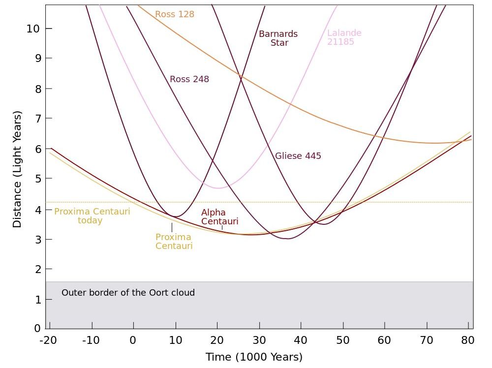 Kaip rašiau aukščiau, išorinė Oorto debesies riba nėra nei tiksliai aiški, nei pastovi. Šiuo metu artimiausia Saulei žvaigždė, Kentauro Proksima, nutolusi apie 1,3 parseko, arba 268 tūkstančius AU. Labai panašiu atstumu yra ir Kentauro Alfa – dviejų maždaug Saulės masės žvaigždžių pora, aplink kurias Proksima sukasi beveik 9000 AU orbita. Šios žvaigždės apriboja Saulės Oorto debesies dydį, nes per daug nutolusius kūnus jų gravitacija gali pasiglemžti sau arba pasiųsti tolyn į tarpžvaigždinę kelionę. Atstumai tarp žvaigždžių nuolat kinta, po 25 tūkstančių metų (labai trumpo laiko, palyginus su Oorto debesies kūnų orbitų periodais) tos pačios Kentauro Alfa ir Proksima bus maždaug ketvirčiu arčiau. Vėliau priartės kitos žvaigždės, anksčiau irgi turėjome svečių apylinkėse. Išorinė Oorto debesies riba yra šio kintančio aplinkinių žvaigždžių gravitacinio lauko padarinys.